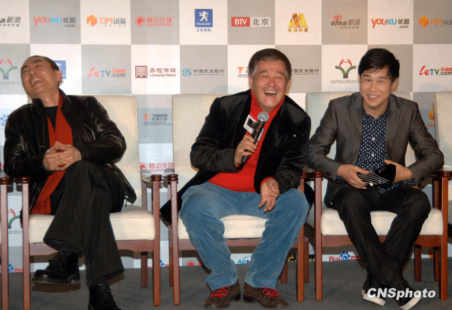 12月9日下午,張藝謀喜劇新作《三槍拍案驚奇》在京舉行首映發(fā)布會,導(dǎo)演張藝謀、大病初愈的趙本山攜孫紅雷、小沈陽、閆妮、倪大洪、程野、毛毛全明星主創(chuàng)團(tuán)隊齊齊亮相,F(xiàn)場張藝謀、趙本山、小沈陽搞笑不斷,引得爆笑連連,上演了一出戲外喜劇。趙本山首度回應(yīng)了花兩億購買私人飛機一事,稱還沒有定下來。張藝謀表示會和“趙家班”繼續(xù)深度合作,并且豪言預(yù)計未來的中國電影單部影片票房可能達(dá)到2億美元。圖為張藝謀、趙本山、小沈陽成為“笑彈”。中新社發(fā) 李學(xué)仕 攝