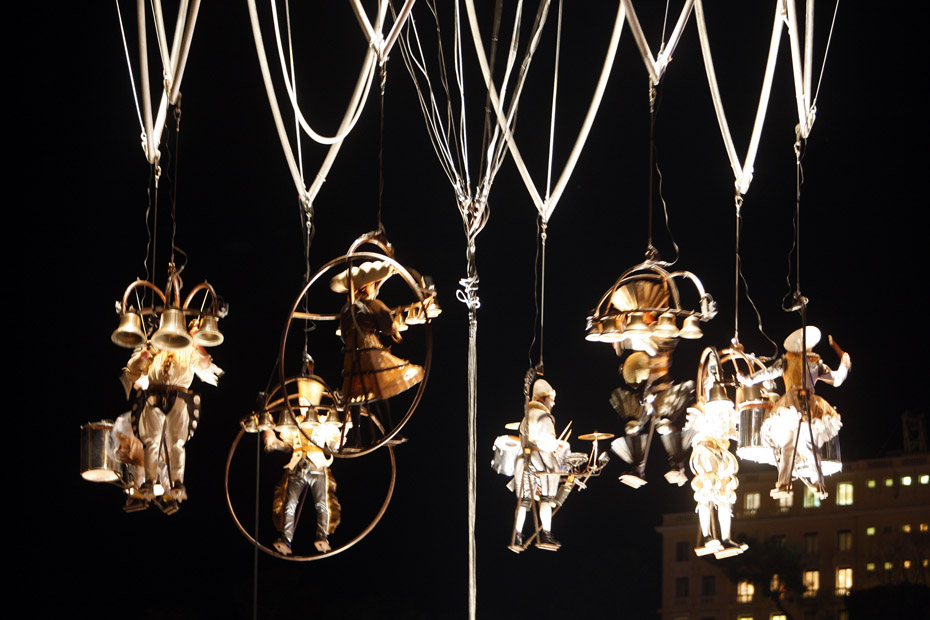 12月9日,墨西哥音樂舞蹈藝術家們進行了一場“空中快車”表演,摩納哥的藝術家們吊在起重機上演奏樂器并表演空中舞蹈。圖片來源:中國新聞網(wǎng)