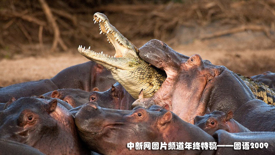 捷克野生動(dòng)物攝影師Vaclav Silha在坦桑尼亞塞倫蓋蒂?lài)?guó)家公園里拍攝到了非常令人震撼的場(chǎng)面。當(dāng)時(shí),一條鱷魚(yú)悄悄混入了一群正在河里洗澡的河馬中,但由于與一頭帶著小河馬的河馬媽媽太過(guò)接近,它很快就被敏感的母河馬發(fā)現(xiàn)。憤怒的河馬們立刻對(duì)它發(fā)起了猛烈地攻擊,這條冒失的鱷魚(yú)很快死于非命。