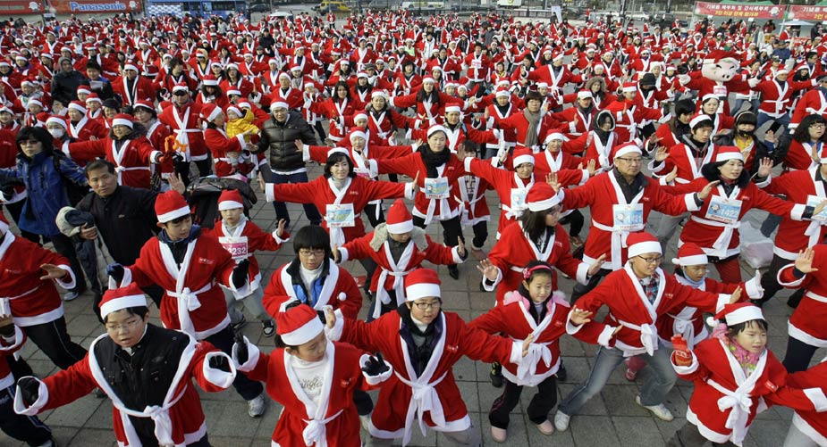 12月12日,“圣誕老人”馬拉松賽跑當(dāng)日在首爾舉行。超過一千名“圣誕老人”參加了此次長跑活動。