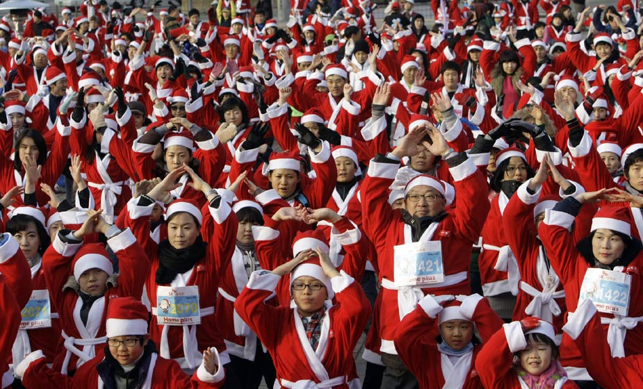12月12日,“圣誕老人”馬拉松賽跑當(dāng)日在首爾舉行。超過一千名“圣誕老人”參加了此次長跑活動。