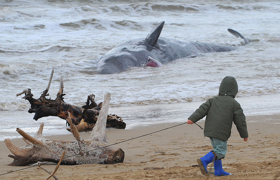 一群抹香鯨12月12日在意大利南部海灘擱淺,其中至少5頭已經(jīng)死亡。據(jù)稱,這群抹香鯨共有9頭,其中有2頭經(jīng)過(guò)救援已成功游回大海,目前相關(guān)人員對(duì)另外2頭正在進(jìn)行救援。圖片來(lái)源:中國(guó)新聞網(wǎng)
