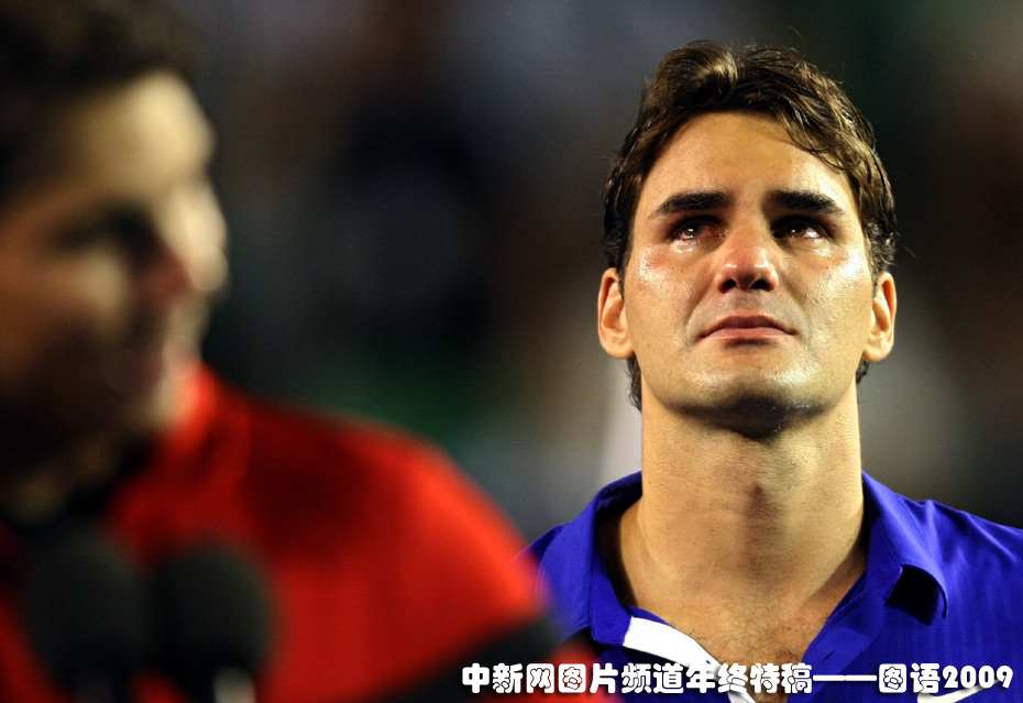 澳網(wǎng)決賽中失利的費(fèi)德勒淚灑當(dāng)場(chǎng)。