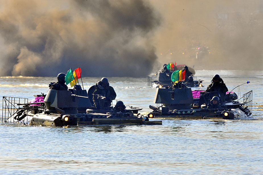 韓國陸軍進(jìn)行大規(guī)模渡河實(shí)戰(zhàn)訓(xùn)練