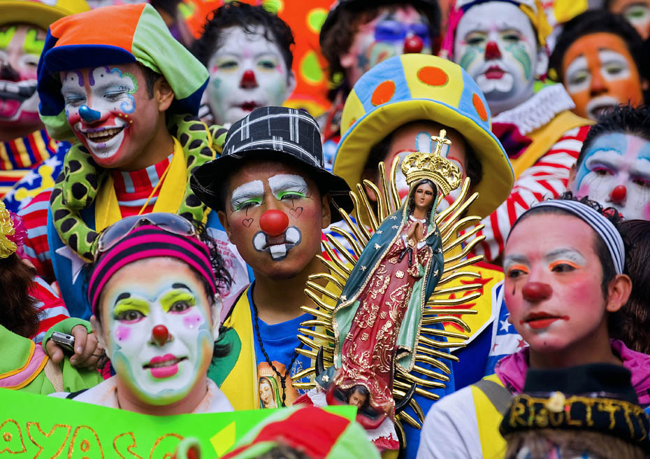 12月16日,墨西哥小丑們聚集在首都墨西哥城參加街頭游行活動,700多名小丑用自己五彩斑斕的服飾和滑稽可笑的表演為沿途的人們帶來歡笑。圖片來源:中國新聞網(wǎng)