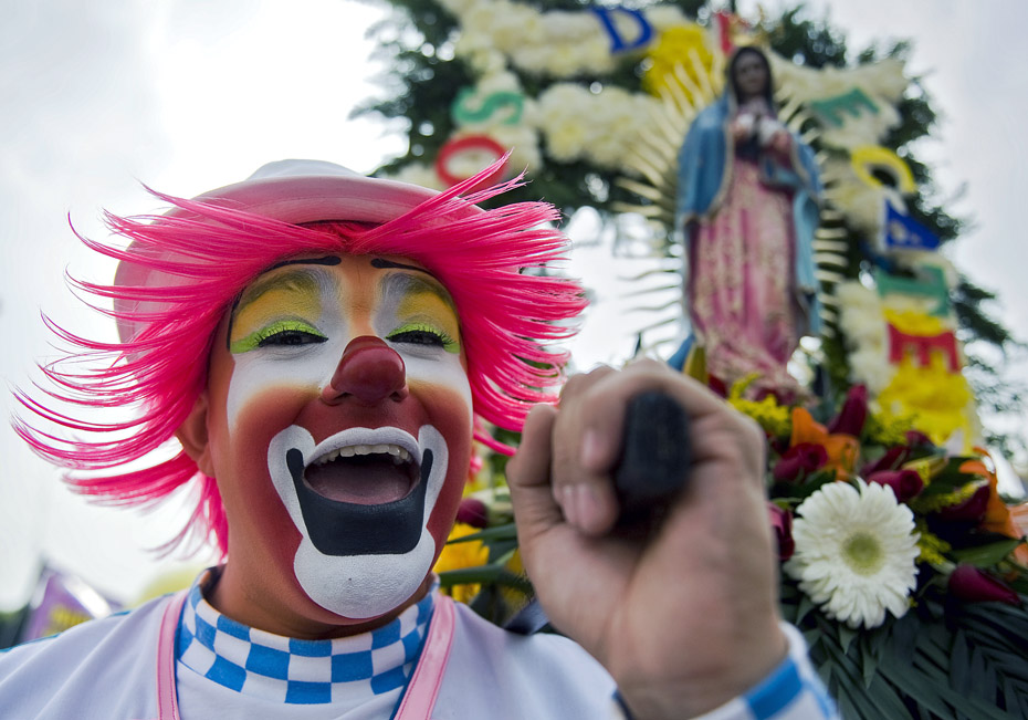 12月16日,墨西哥小丑們聚集在首都墨西哥城參加街頭游行活動,700多名小丑用自己五彩斑斕的服飾和滑稽可笑的表演為沿途的人們帶來歡笑。圖片來源:中國新聞網(wǎng)