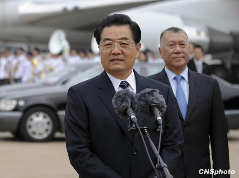 12月19日中午,中共中央總書(shū)記、國(guó)家主席、中央軍委主席胡錦濤乘專機(jī)抵達(dá)澳門(mén)并在機(jī)場(chǎng)發(fā)表講話。中新社發(fā) 廖攀 攝