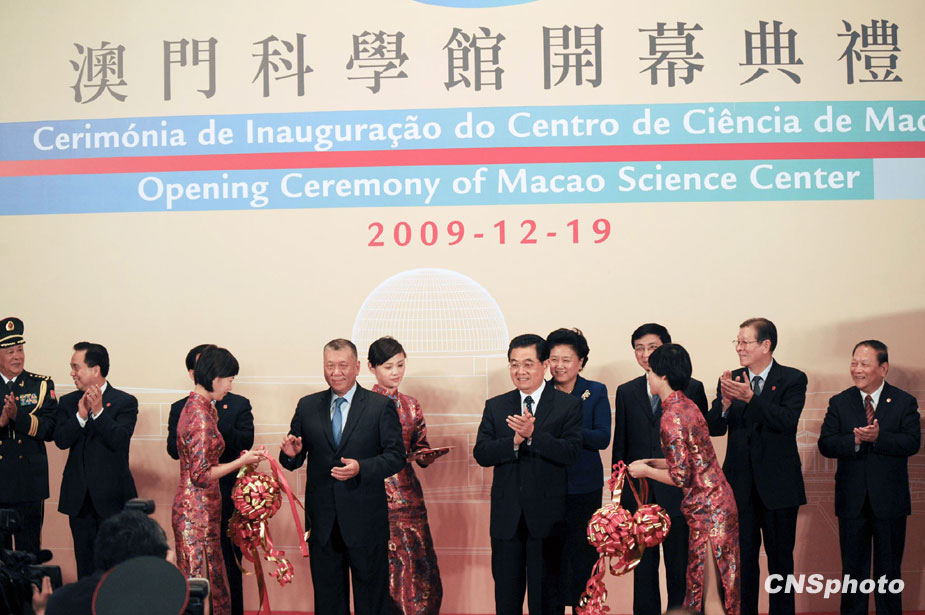 12月19日下午,國(guó)家主席胡錦濤與澳門特首何厚鏵等出席澳門科學(xué)館開幕典禮并剪彩。中新社發(fā) 廖攀 攝