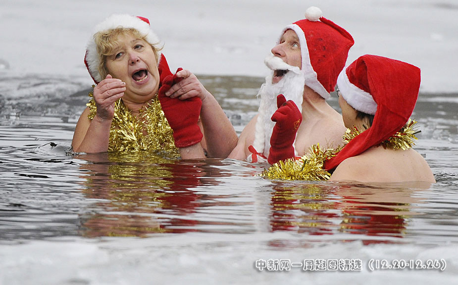 12月25日,德國柏林的冬泳俱樂部“柏林海豹”(Berliner Seehunde)的成員不畏寒冬,光著身子在已經(jīng)結(jié)冰的Oranke湖中暢游一番。圖片來源:中國新聞網(wǎng)>>點擊觀看詳細(xì)內(nèi)容