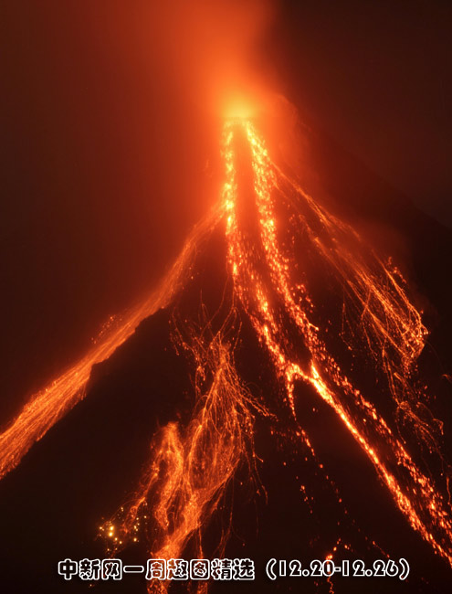 12月23日,菲律賓阿爾拜省黎加斯比市馬榮火山口噴發(fā)大量巖漿。圖片來(lái)源:中國(guó)新聞網(wǎng)>>點(diǎn)擊觀看詳細(xì)內(nèi)容