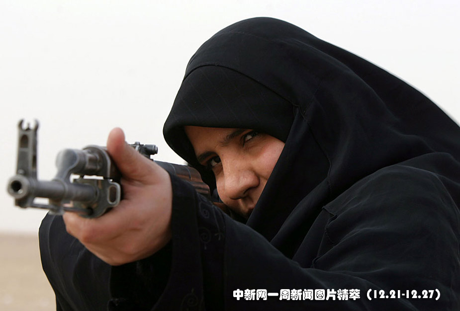 22日(周二),在伊拉克納杰夫的警察學(xué)院,一名女警官在槍械訓(xùn)練中瞄準(zhǔn)目標(biāo)。