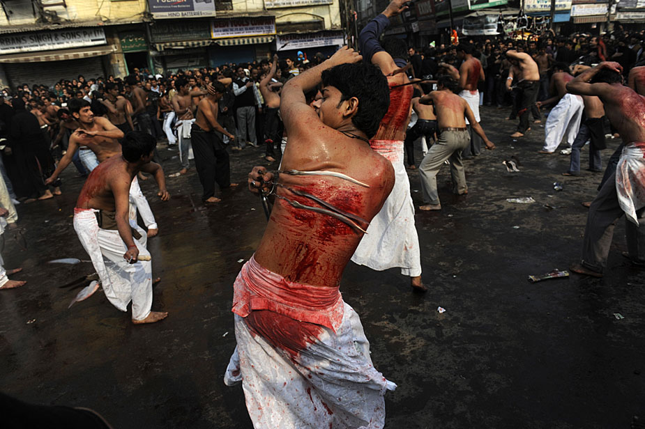 12月28日,印度穆斯林慶祝阿舒拉節(jié)。一些當(dāng)?shù)啬滤沽衷趦x式上用鐵鞭抽打自己,以此慶祝節(jié)日。圖片來源:中國新聞網(wǎng)