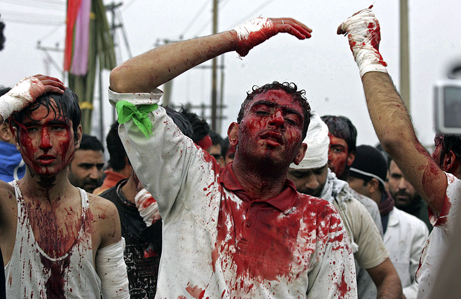 12月28日,印度穆斯林慶祝阿舒拉節(jié)。一些當(dāng)?shù)啬滤沽衷趦x式上用鐵鞭抽打自己,以此慶祝節(jié)日。圖片來源:中國(guó)新聞網(wǎng)
