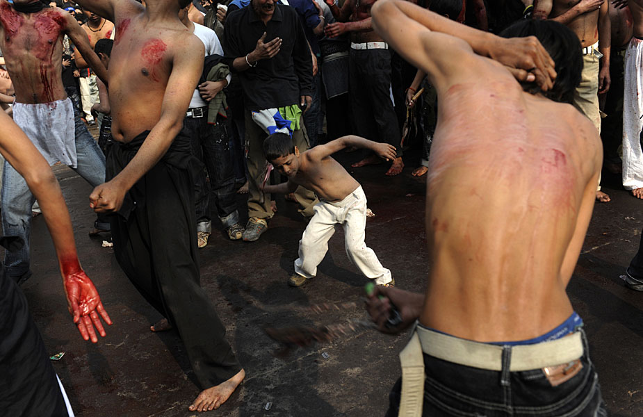 12月28日,印度穆斯林慶祝阿舒拉節(jié)。一些當(dāng)?shù)啬滤沽衷趦x式上用鐵鞭抽打自己,以此慶祝節(jié)日。圖片來(lái)源:中國(guó)新聞網(wǎng)