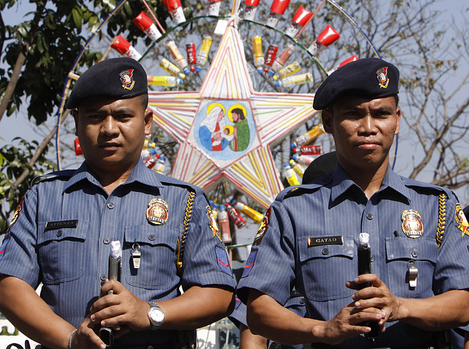 12月29日,菲律賓首都南部的塔吉格市警察部隊(duì)為了防止警務(wù)人員在慶祝新年時(shí)胡亂開槍,下令用膠紙把槍口封起來。圖片來源:中國新聞網(wǎng)