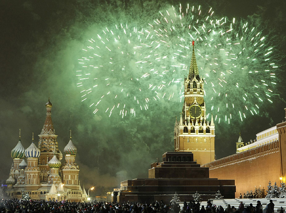 圖為2010年1月1日,俄羅斯首都莫斯科紅場(chǎng)上舉行了煙花表演。