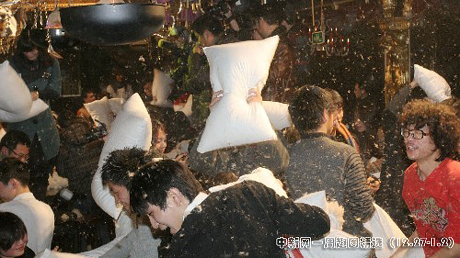12月27日下午,武漢漢口江灘夜色酒吧,80特區(qū)舉行五百人枕頭大戰(zhàn)狂歡派對。80后青年在主持人帶領下展開了3個小時的互動游戲。在主打活動“枕頭大戰(zhàn)”中,青年人歡笑、奔跑、跳躍,用裝滿羽毛的白色大枕頭展開對決。據了解,枕頭大戰(zhàn)是當今流行的一種緩解工作、生活壓力的減壓聚會方式。圖片來源:中國新聞網>>點擊觀看詳細內容