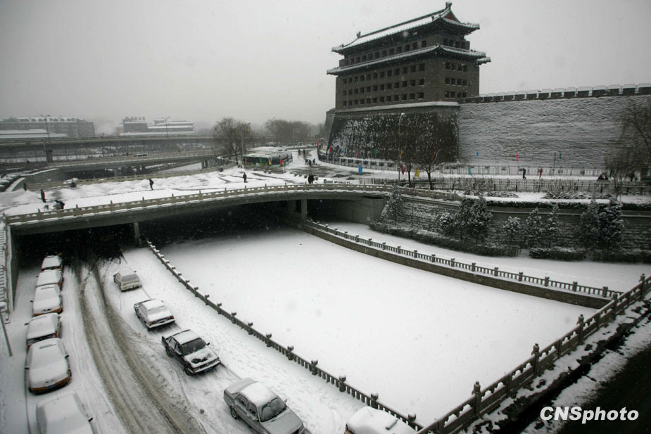 1月3日,北京城降下大雪,積雪深達(dá)6厘米,預(yù)計(jì)雪花會(huì)飄灑一整天。天氣預(yù)報(bào)稱,北京地區(qū)的氣溫有可能達(dá)到-16℃,從而逼近40年來的歷史低溫極值。圖片來源:中國新聞網(wǎng)