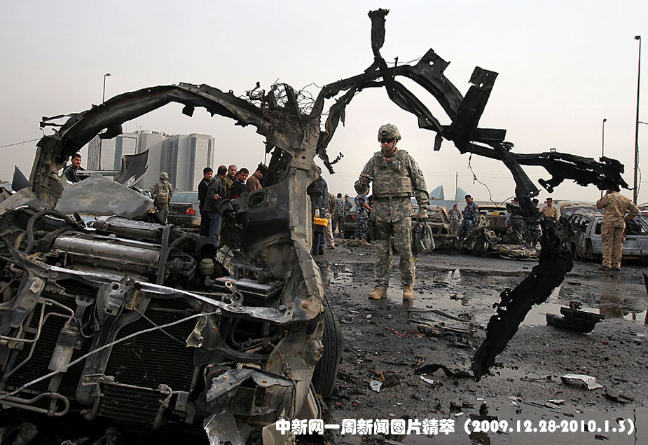 周二(29日),巴格達(dá)東部的政府辦公地發(fā)生爆炸事件,駐阿美軍士兵正在檢查案發(fā)地。圖片來源:中國(guó)新聞網(wǎng)
