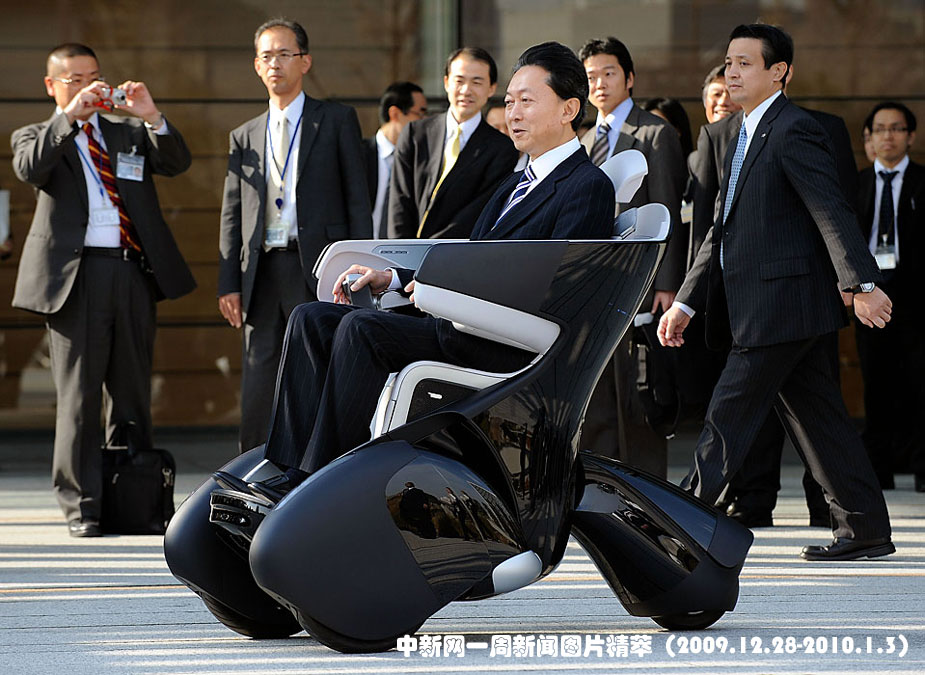 周三(30日),日本首相鳩山由紀(jì)夫抵達(dá)日本某公司試駕該公司生產(chǎn)的“i-Real”單人用交通工具!癷-Real”由輕質(zhì)的碳纖維和塑膠制成,控制方式由傳統(tǒng)汽車的方向盤操作改為兩側(cè)手臂休息處的控制面板,最高時速可達(dá)18.6英里/時。圖片來源:中國新聞網(wǎng)