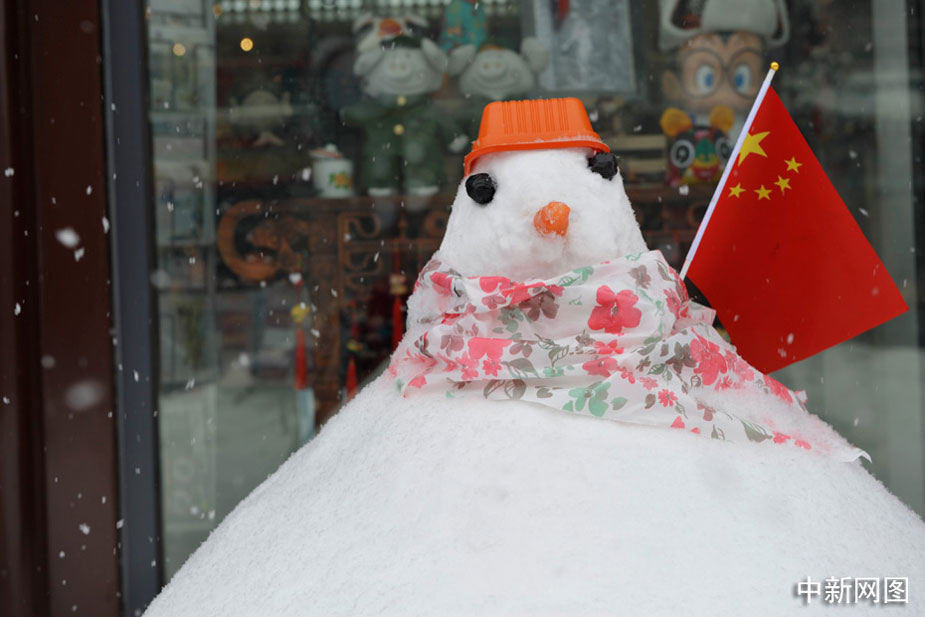 人們將積雪堆起做起了可愛的雪人。中新網(wǎng)記者 金碩 攝