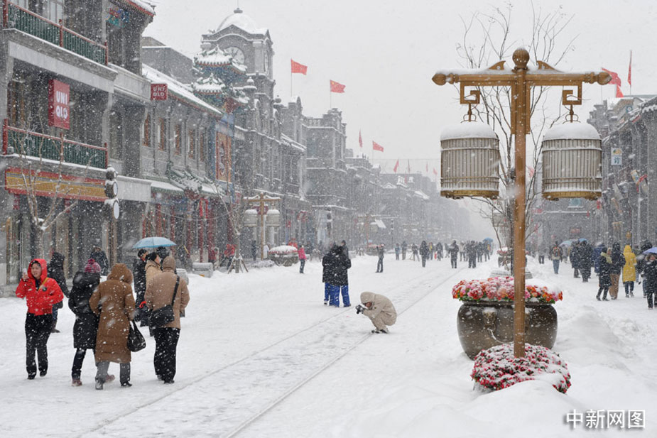 1月3日,北京前門大街上人們不畏大雪。中新網(wǎng)記者 金碩 攝