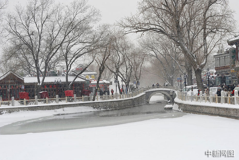 1月3日,北京后海地區(qū)的銀錠橋雪景如畫。中新網(wǎng)記者 金碩 攝