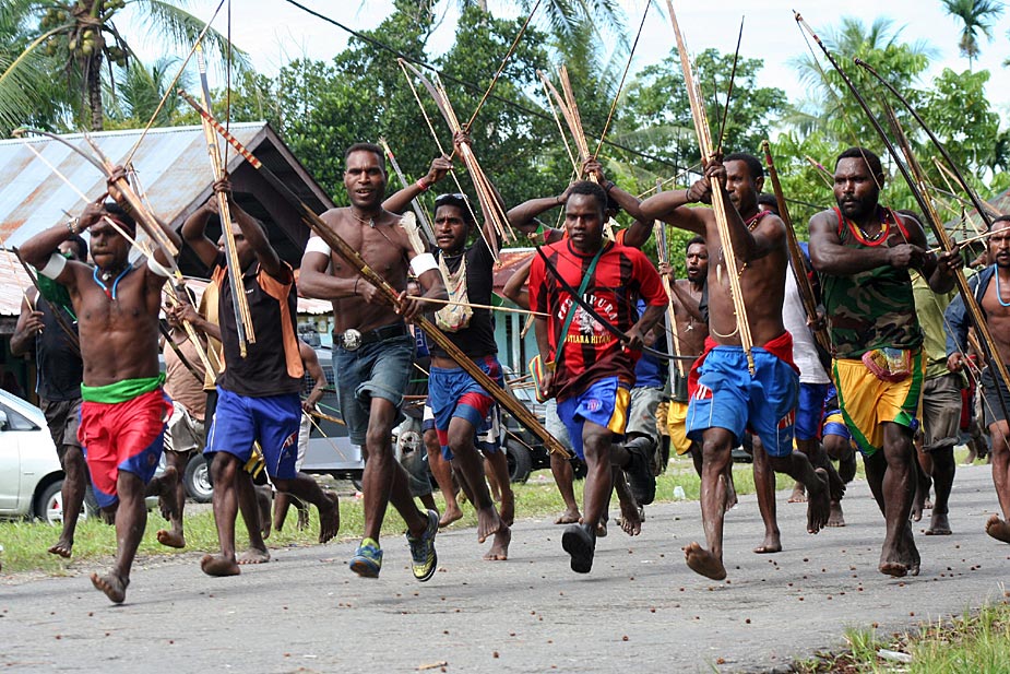 1月6日,印尼巴布省的兩個(gè)村落因債務(wù)問(wèn)題引發(fā)了武裝爭(zhēng)斗,雙方手持弓箭等原始武器進(jìn)行了一場(chǎng)原始的戰(zhàn)爭(zhēng)。目前,這場(chǎng)沖突已經(jīng)造成多人傷亡。圖片來(lái)源:中國(guó)新聞網(wǎng)