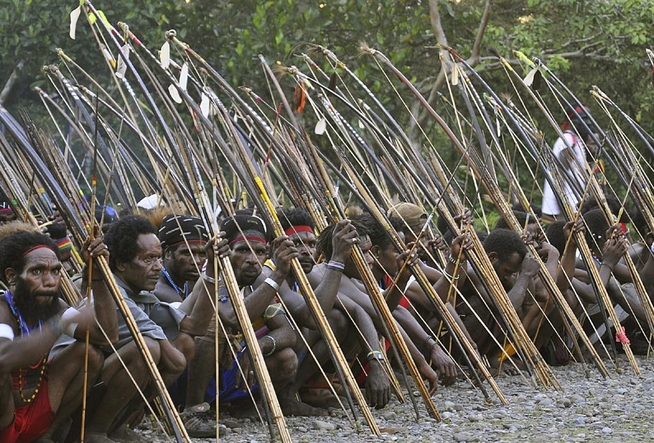 1月6日,印尼巴布省的兩個村落因債務(wù)問題引發(fā)了武裝爭斗,雙方手持弓箭等原始武器進(jìn)行了一場原始的戰(zhàn)爭。目前,這場沖突已經(jīng)造成多人傷亡。圖片來源:中國新聞網(wǎng)