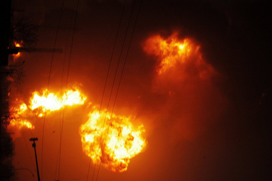 1月7日,蘭州石化公司石油化工廠316罐區(qū)爆炸著火。甘肅省政府當(dāng)日深夜在現(xiàn)場(chǎng)舉行新聞發(fā)布會(huì)說(shuō),事故造成1人重傷、5人輕傷、9人留院觀察、5人失蹤。 圖為爆炸現(xiàn)場(chǎng)。于永昭/CFP