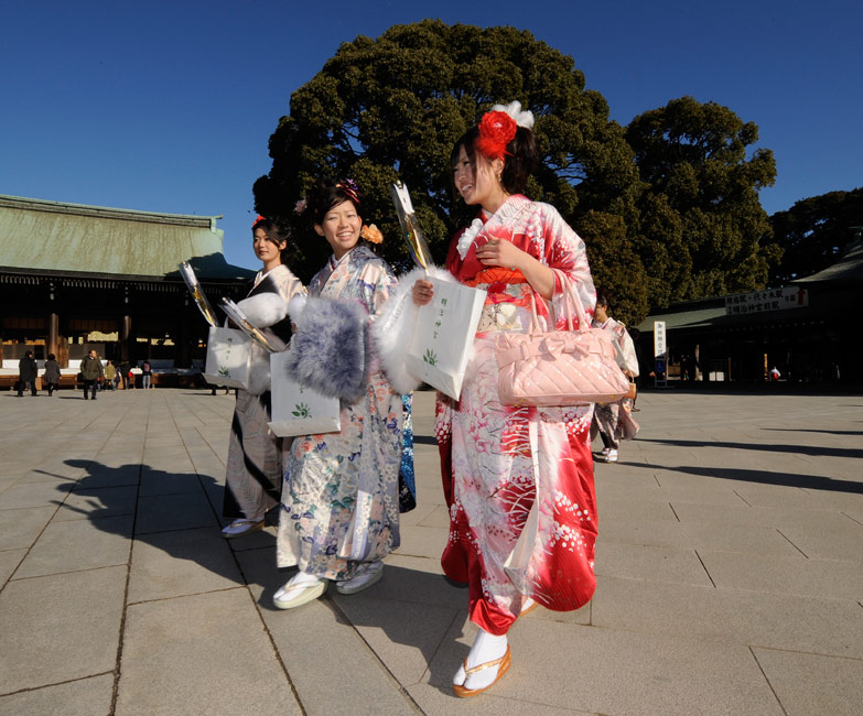 今年的1月11日,是日本傳統(tǒng)的成人節(jié),所有滿20歲的年輕人將宣告自己邁進(jìn)了成人行列。1月8日,日本一家公司年滿20歲的年輕女孩紛紛穿上和服,到廟宇中祈福,提前慶祝成人節(jié)的到來(lái)。