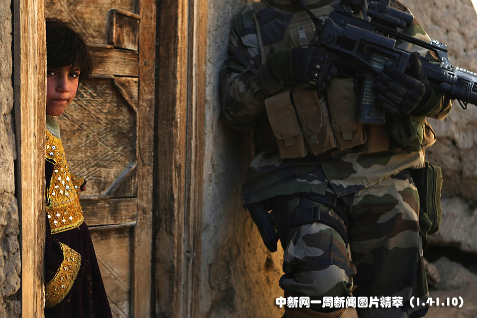 1月6日(周三),阿富汗卡披薩,一名阿富汗女孩在看著法國士兵挨家挨戶搜查恐怖分子。圖片來源:中國新聞網(wǎng)
