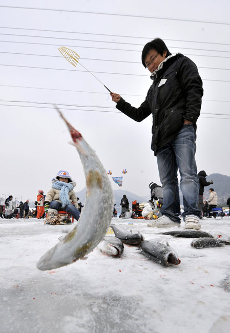 2010年1月9日,韓國華川郡,一年一度的華川山鱒魚節(jié)當(dāng)日舉行。圖片來源:中國新聞網(wǎng)