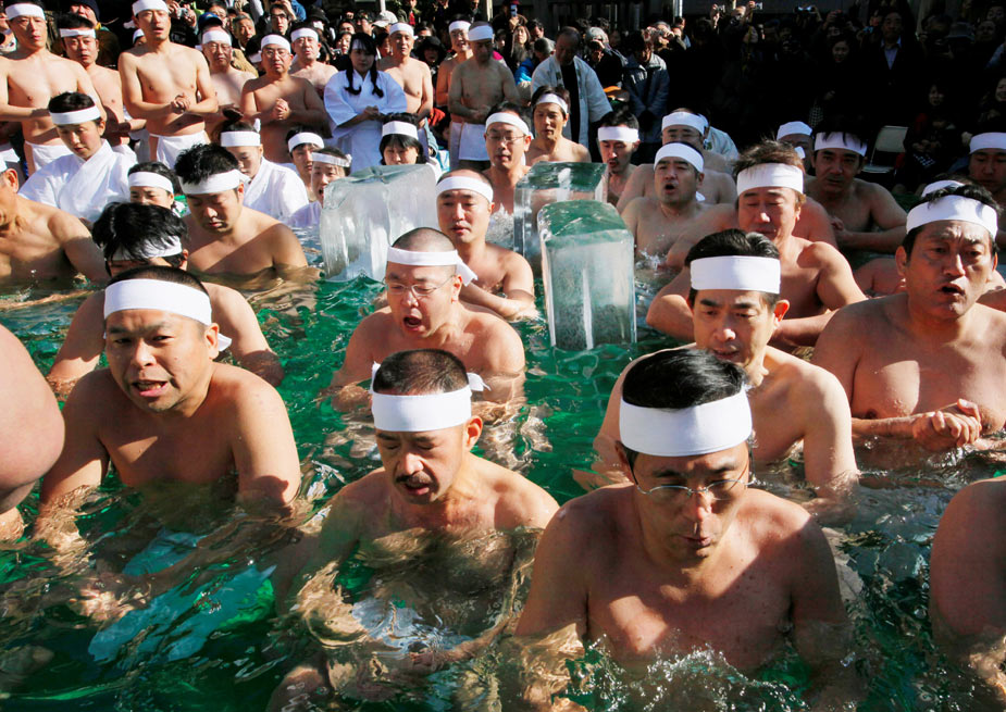 2010年1月10日,日本東京,眾多健身愛好者一同在冷水中浸泡,祈禱自己在新一年身體健康,并展示自己的體魄。