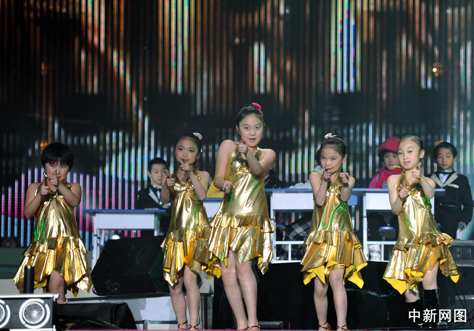 1月11日晚,第二屆音樂(lè)風(fēng)云榜新人盛典在京舉行,盛典現(xiàn)場(chǎng)的音樂(lè)課上,兒童版的Wonder Girl、Super Junior、邁克爾·杰克遜、曾軼可、大張偉紛紛登臺(tái)獻(xiàn)藝,讓現(xiàn)場(chǎng)觀眾們笑聲不斷。中新網(wǎng)記者 金碩 攝