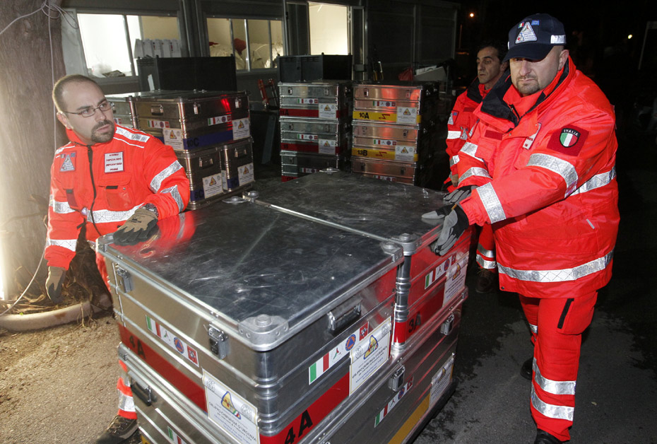 圖為意大利救援隊正在裝備救援物資。海地發(fā)生強烈地震,傷亡慘重,國際社會在第一時間紛紛伸出援手。中國、美國、法國等多個國家和地區(qū)的救援隊已集結(jié)完畢,奔赴海地地震災(zāi)區(qū)。圖片來源:中國新聞網(wǎng)
