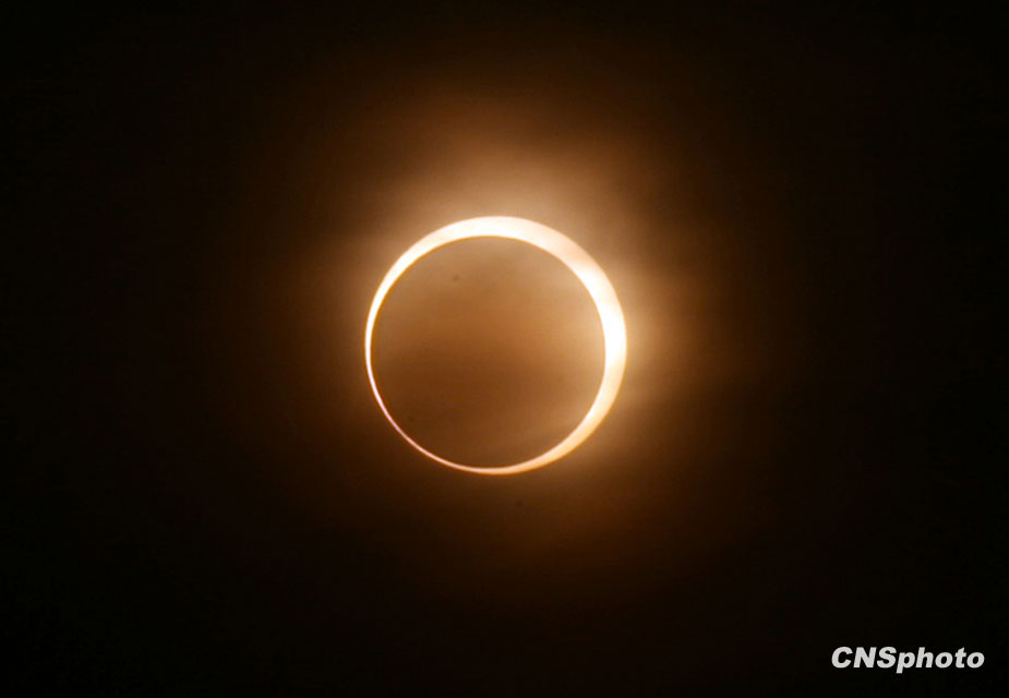本世紀(jì)首場,也是全球未來1000年內(nèi)環(huán)食持續(xù)時(shí)間最長的日環(huán)食1月15日劃過天際。日環(huán)食帶從印度洋經(jīng)過緬甸進(jìn)入中國國,由云南經(jīng)四川省的部分地區(qū),再穿過重慶市、湖北省西北部,直至華北地區(qū)。圖片來源:中國新聞網(wǎng)