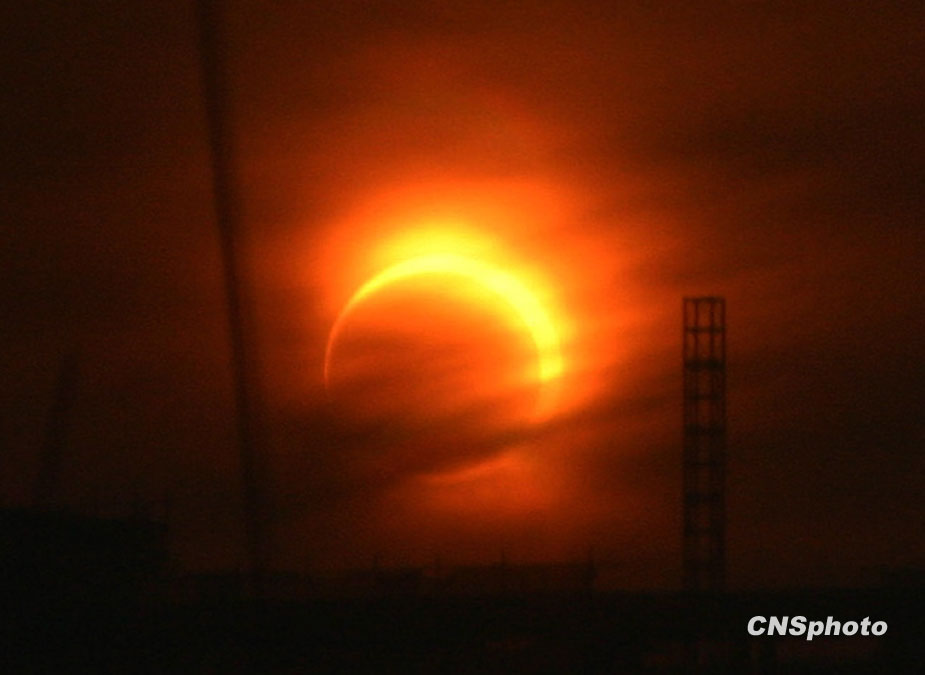 本世紀(jì)首場(chǎng),也是全球未來1000年內(nèi)環(huán)食持續(xù)時(shí)間最長(zhǎng)的日環(huán)食1月15日劃過天際。日環(huán)食帶從印度洋經(jīng)過緬甸進(jìn)入中國國,由云南經(jīng)四川省的部分地區(qū),再穿過重慶市、湖北省西北部,直至華北地區(qū)。圖片來源:中國新聞網(wǎng)