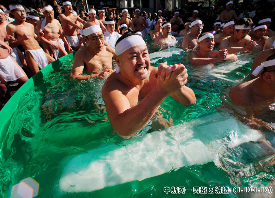 2010年1月10日,日本東京,眾多健身愛好者一同在冷水中浸泡,祈禱自己在新一年身體健康,并展示自己的體魄。圖片來源:中國新聞網(wǎng)>>點擊觀看詳細內(nèi)容