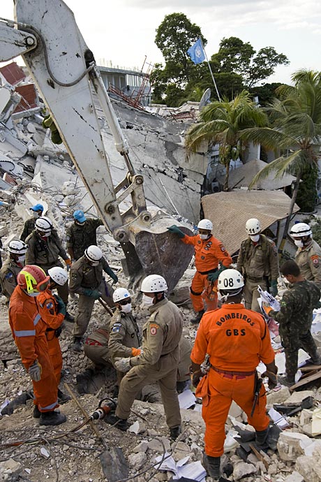 1月16日,海地首都太子港,中國國際救援隊(duì)在聯(lián)海團(tuán)總部對遇難者進(jìn)行搜尋工作。此前八名中方失蹤人員的遺體已全被找到。圖片來源:中國新聞網(wǎng)