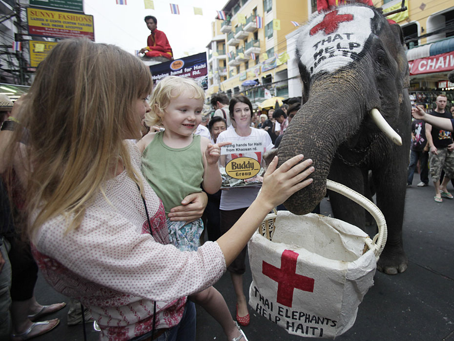 泰國大象為海地災(zāi)區(qū)募捐