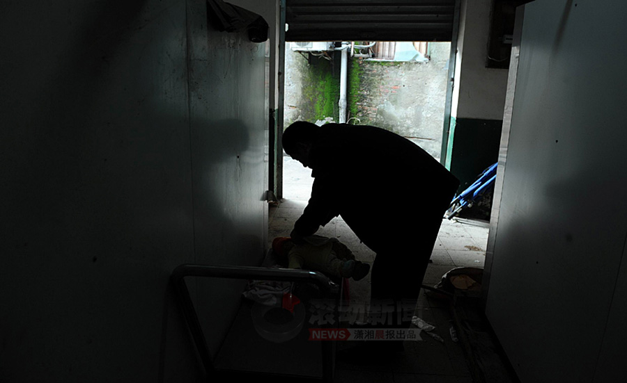 1月19日,省兒童醫(yī)院太平間,高雄飛給小振和穿上剛買的新衣服,送兒子最后一程!皟鹤樱“职纸o 你穿衣服來了,乖乖的。 备咝埏w鼻子不停地抽搐,雙手卻輕輕地給 兒子穿上新買的黃色小衣裳。瀟湘晨報 記者 楊抒懷 攝