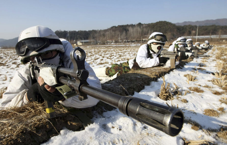 1月27日,韓國江原道,韓國陸軍部隊在嚴寒中進行戰(zhàn)術(shù)訓(xùn)練。
