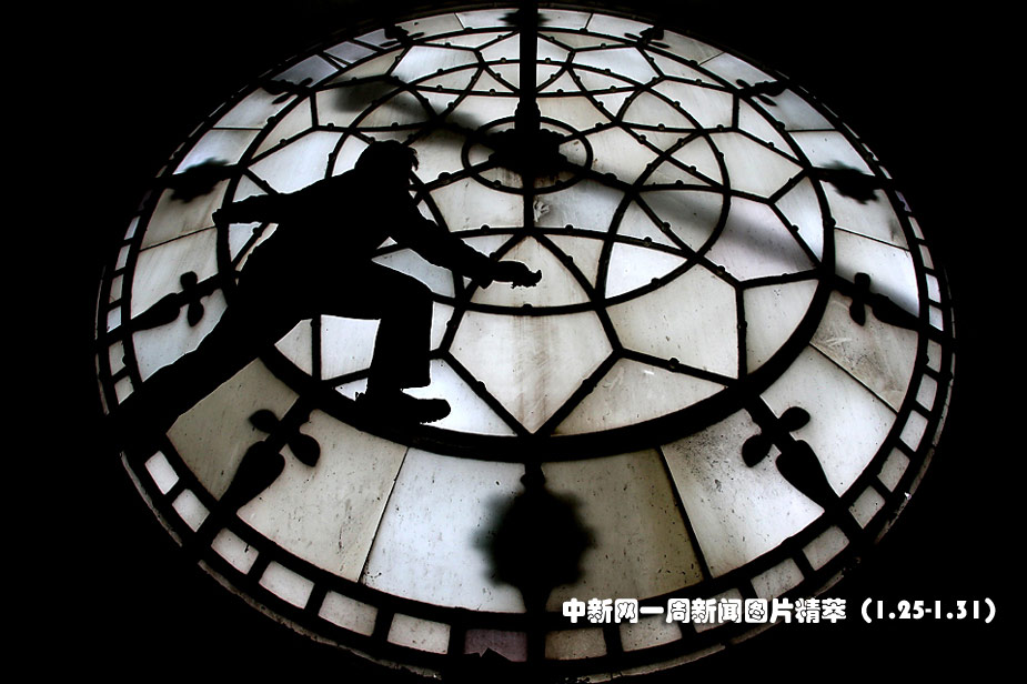 1月28日(周四),在英格蘭曼徹斯特市政廳里,鐘表專家對鐘表“Great Abel” 進行一年一度的大清理。圖片來源:中國新聞網(wǎng)