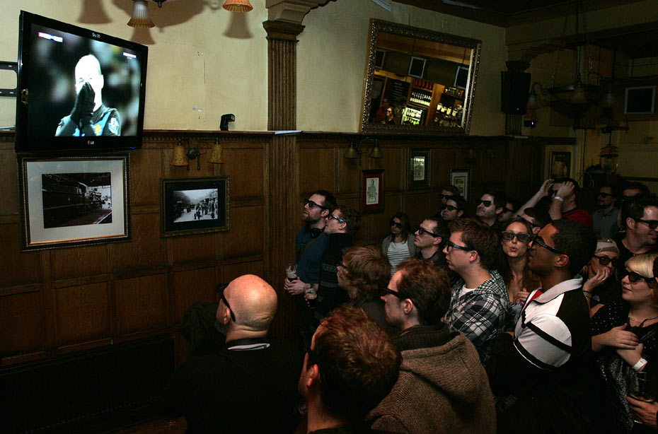 圖為球迷在倫敦的酒吧里享受3D足球直播。北京時間2月1日,英國體育頻道首次使用3D技術(shù)對阿森納與曼聯(lián)的比賽進(jìn)行電視直播。據(jù)悉,今年南非世界杯也將進(jìn)行3D轉(zhuǎn)播。