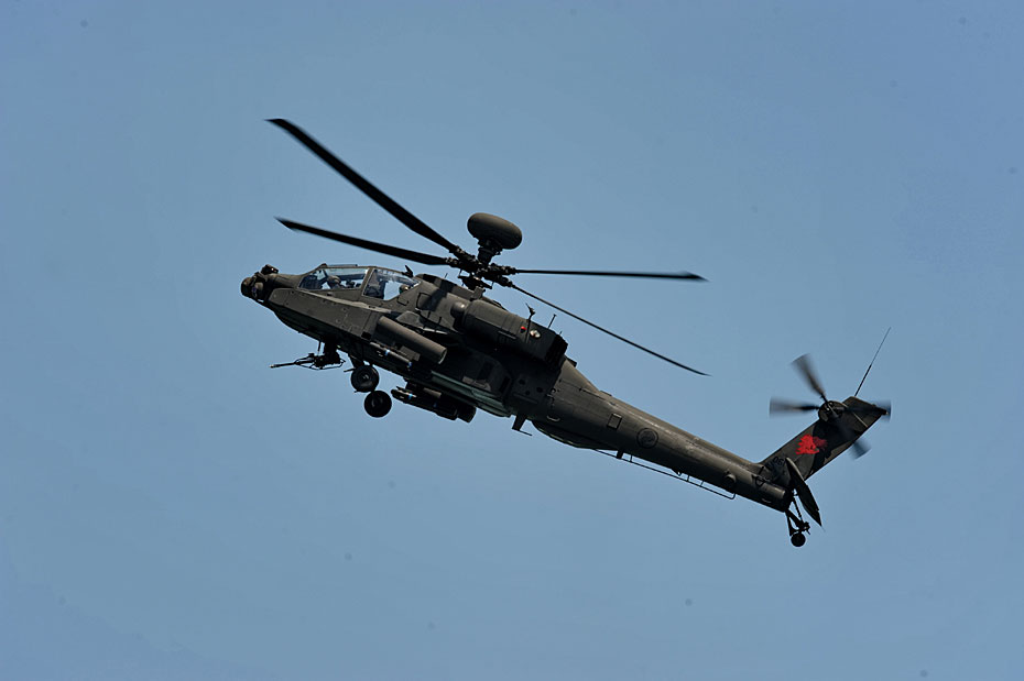 圖為AH-64阿帕奇武裝直升機(jī)在進(jìn)行飛行表演。
