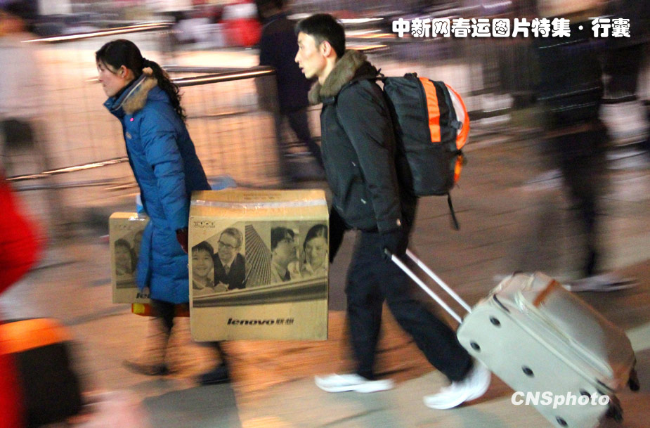 春節(jié)臨近,出門在外的人拎著大包小包地回家過(guò)年。這行囊或重或輕,可能是帶給父母的孝敬,也可能是帶給愛(ài)人的心動(dòng),但每個(gè)行囊中一定都會(huì)裝著人們一年來(lái)收獲的喜悅之情。中新社發(fā) 王建中 攝