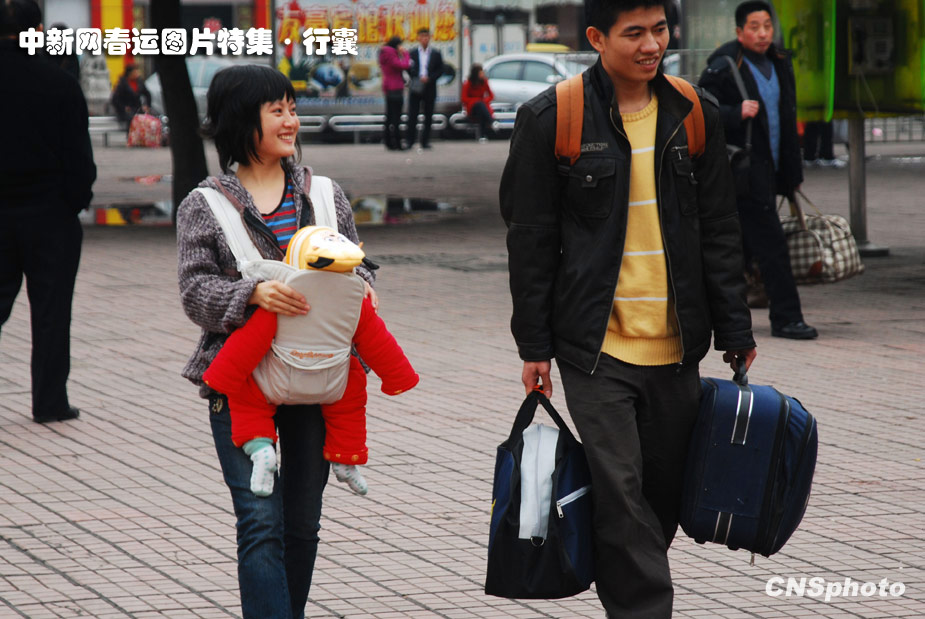 春節(jié)臨近,出門在外的人拎著大包小包地回家過年。這行囊或重或輕,可能是帶給父母的孝敬,也可能是帶給愛人的心動(dòng),但每個(gè)行囊中一定都會(huì)裝著人們一年來收獲的喜悅之情!≈行律绨l(fā) 賀茂峰 攝