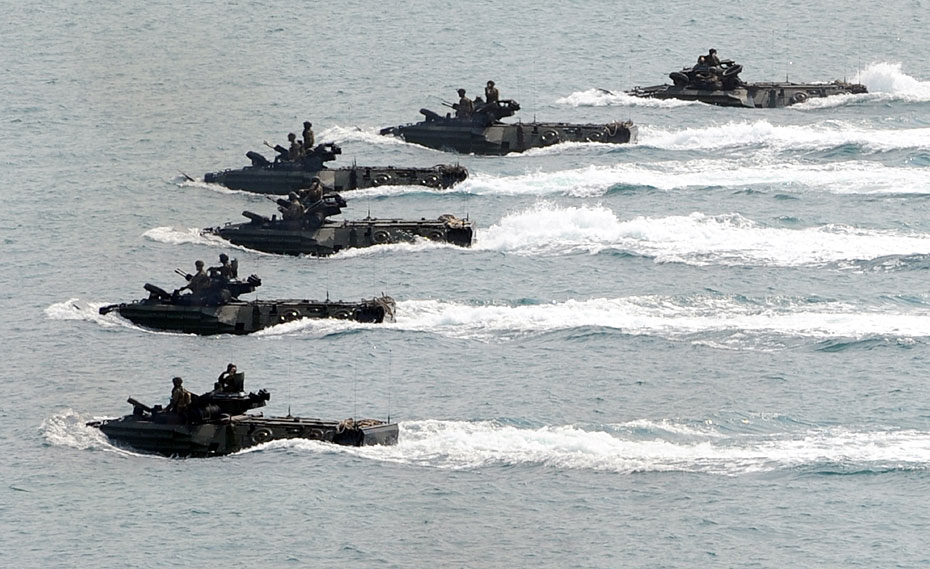 2月4日,參加“金色眼鏡蛇”聯(lián)合軍演的各國軍隊,在泰國的Rayong省沙灘進行了兩棲登陸演練。本次聯(lián)合軍演共有來自泰國、美國、印度尼西亞、新加坡、日本、韓國的約1.4萬名軍人參加。圖片來源:中國新聞網(wǎng)