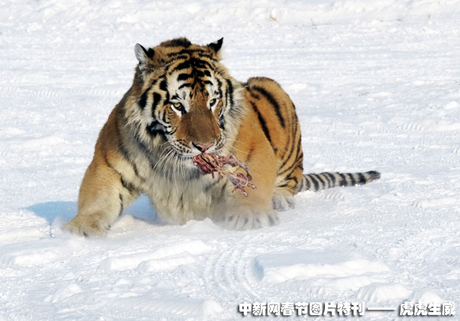 1月13日,黑龍江東北虎林園,老虎在雪地中嬉戲追逐。(王少華 張書儉 攝) 圖片來源:中國(guó)新聞網(wǎng)